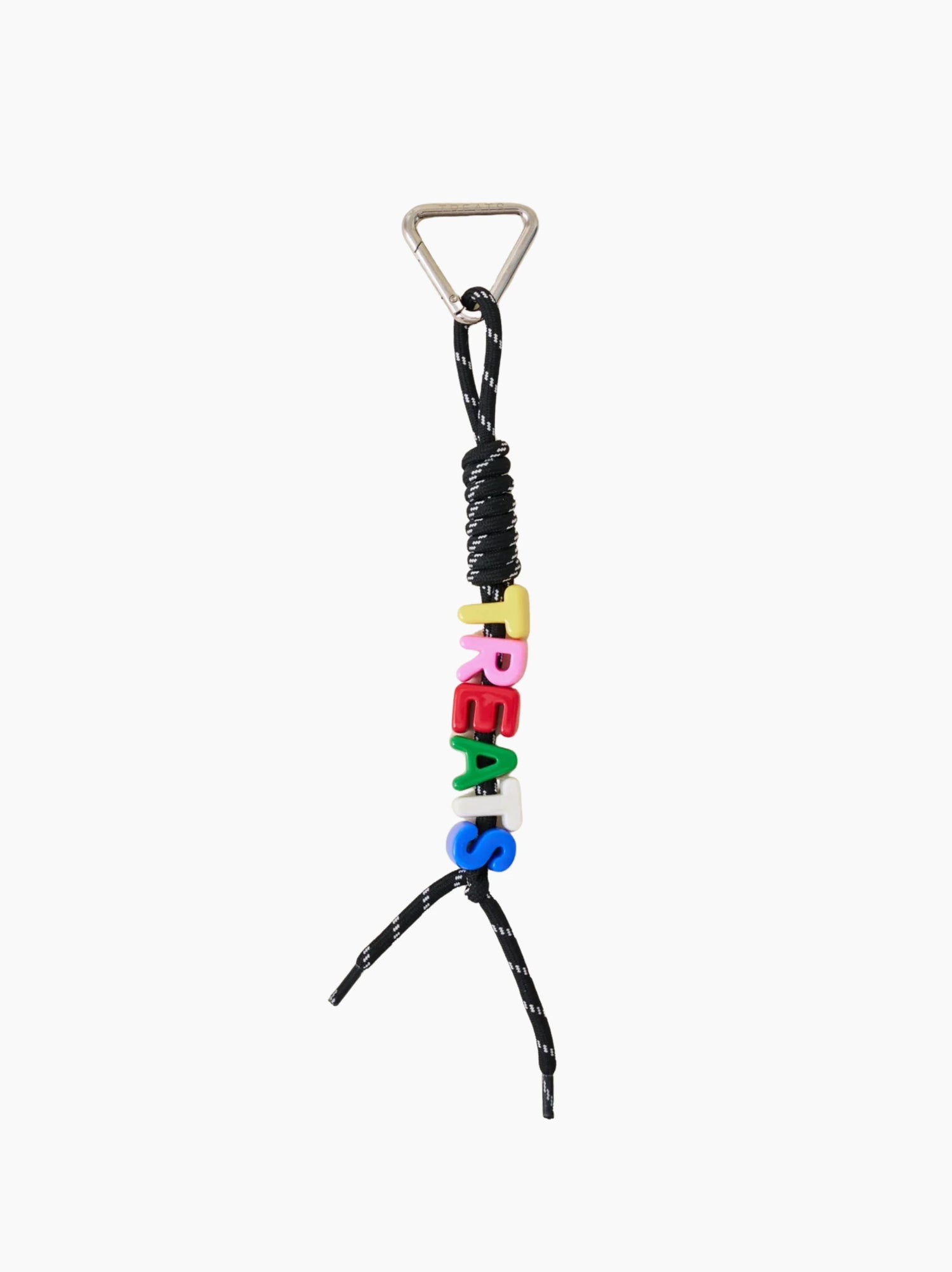 Choose your letters and clip onto your bag, keys, or phone case for a sleek pop of personality. Made with black tonal letters and strung on a knotted rope cord with carabiner and phone case attachment included - your everyday accessory, but sharper.