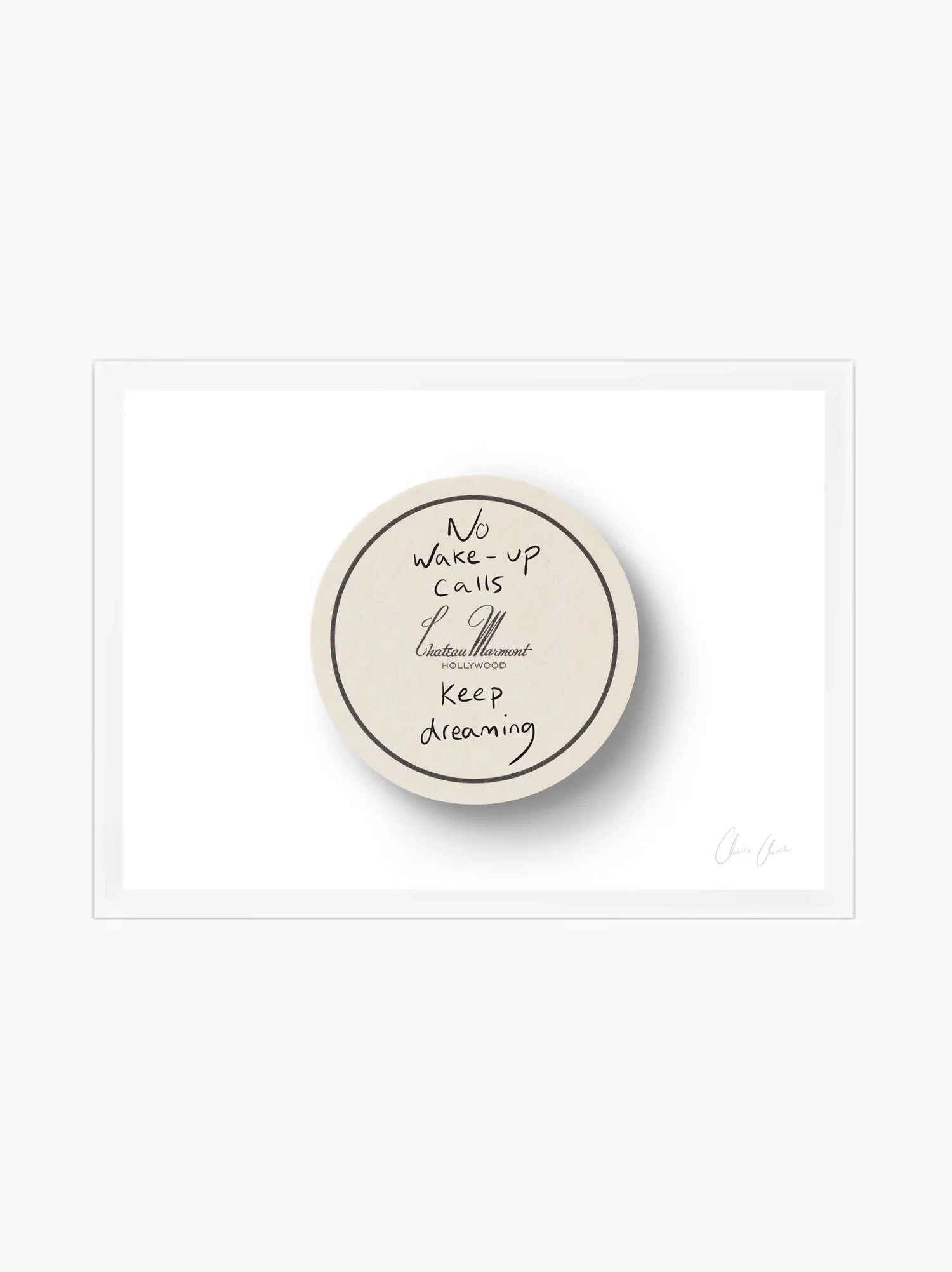 This framed print spotlights a coaster from Chateau Marmont, a keepsake of dimly lit bars, whispered conversations, and the effortless glamour of LA evenings.