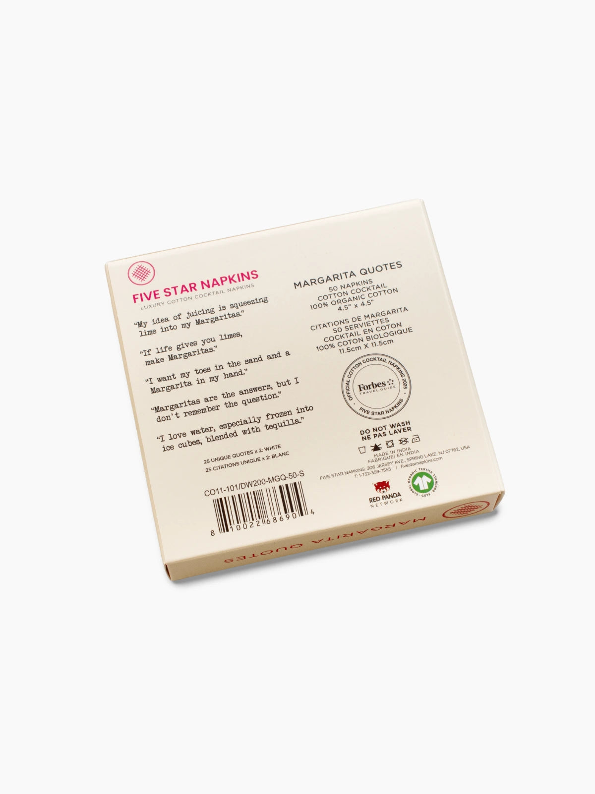These organic cotton cocktail napkins pair crisp white texture with 25 margarita-themed quips that spark instant laughter. A chic, disposable upgrade that keeps hosting stylish - no washing, ironing, or post-party chaos required.