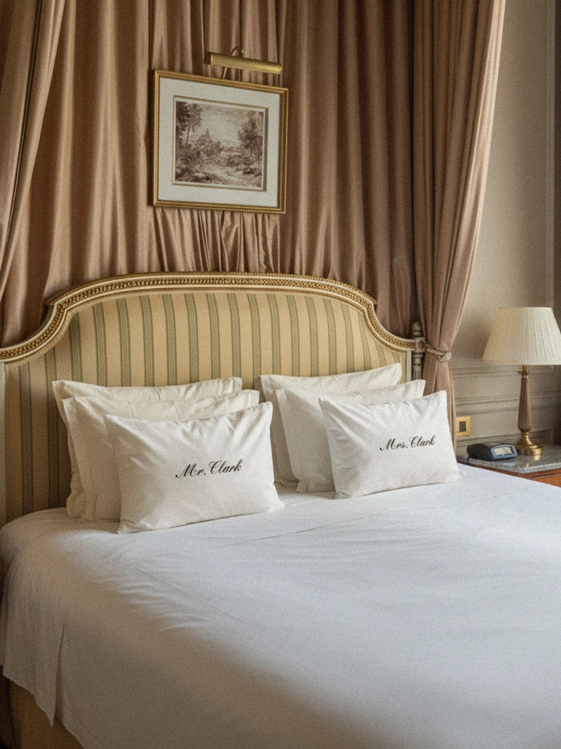 A classic pairing with a personal touch, this embroidered pillowcase set brings a quiet romance to your nightly routine. Made from soft, breathable cotton and stitched with care, it’s equal parts timeless and playful, the perfect finishing touch for “happily ever after."