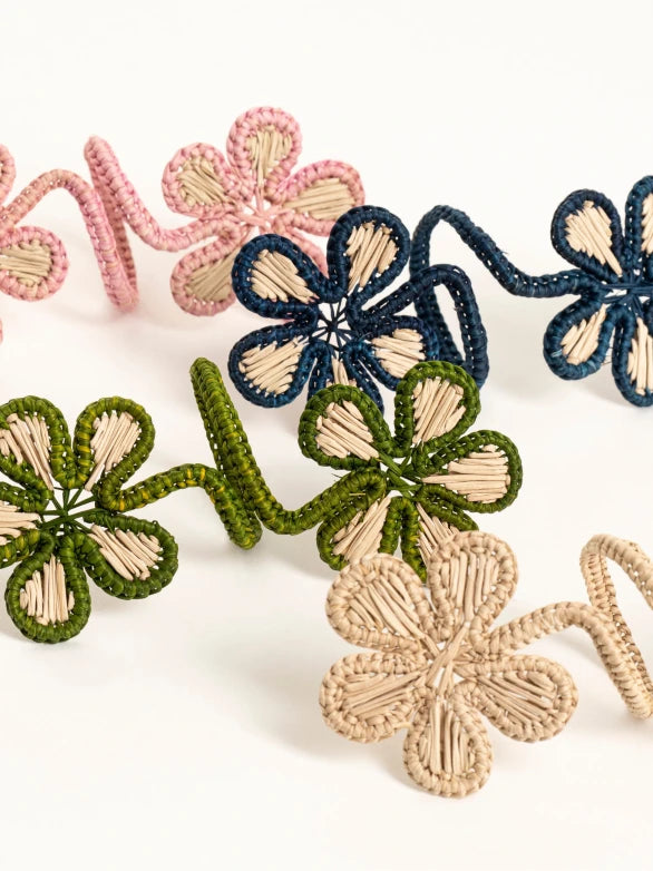 Designed as delicate rolled blooms, these woven napkin rings add a soft, romantic touch to your setting. Each one is carefully handmade in Usiacurí, Colombia, showcasing the beauty and detail of traditional Iraca palm craftsmanship.