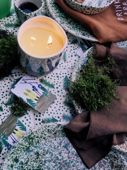 This duo of playing cards comes dressed in chic ski designs - one yellow, one burgundy - marked with crisp lines and tiny telecabines. Kept in a green linen pouch, they’re ready for weekend cabins, long evenings in, and any moment that could use a little slope-side spirit.