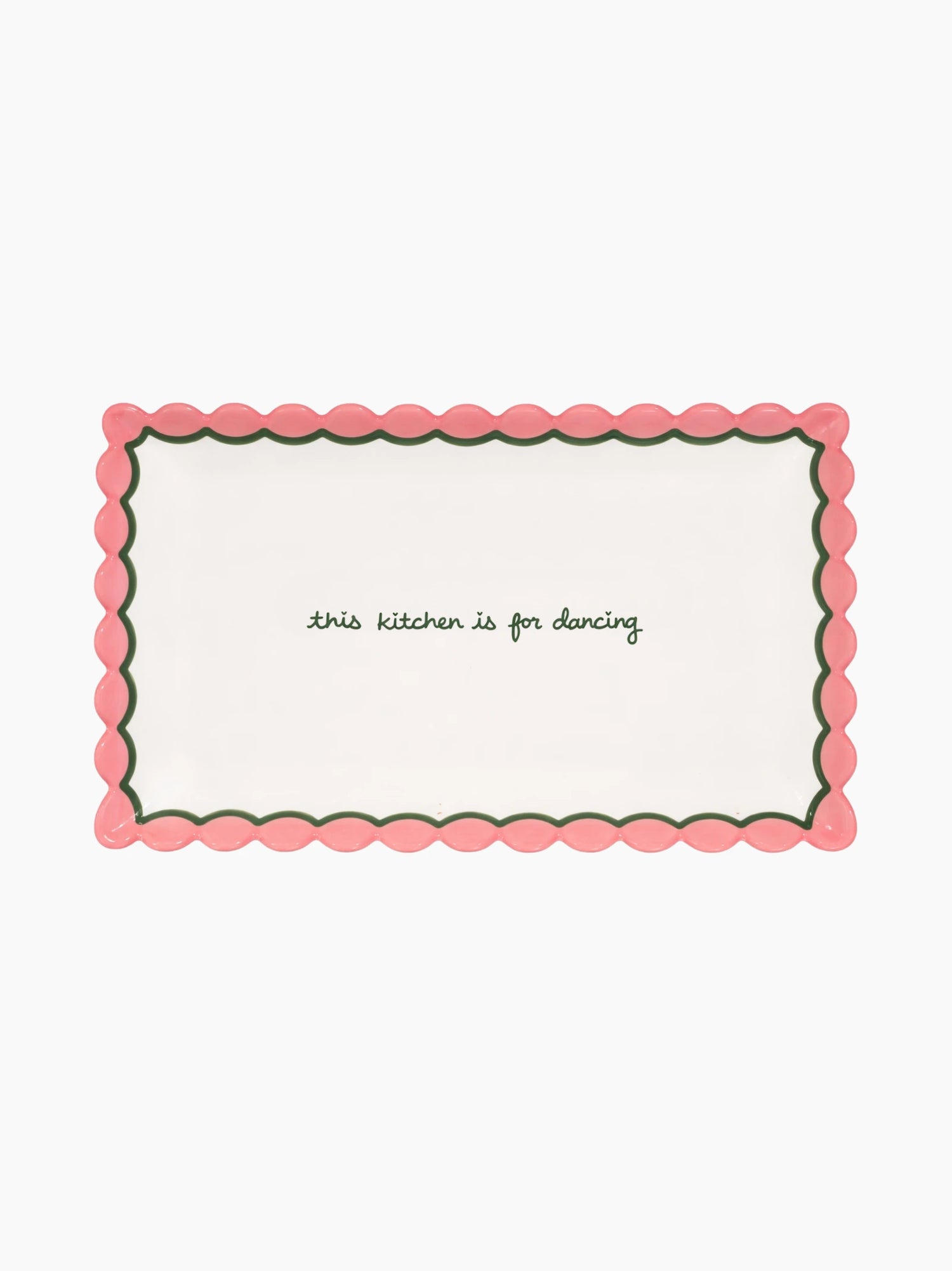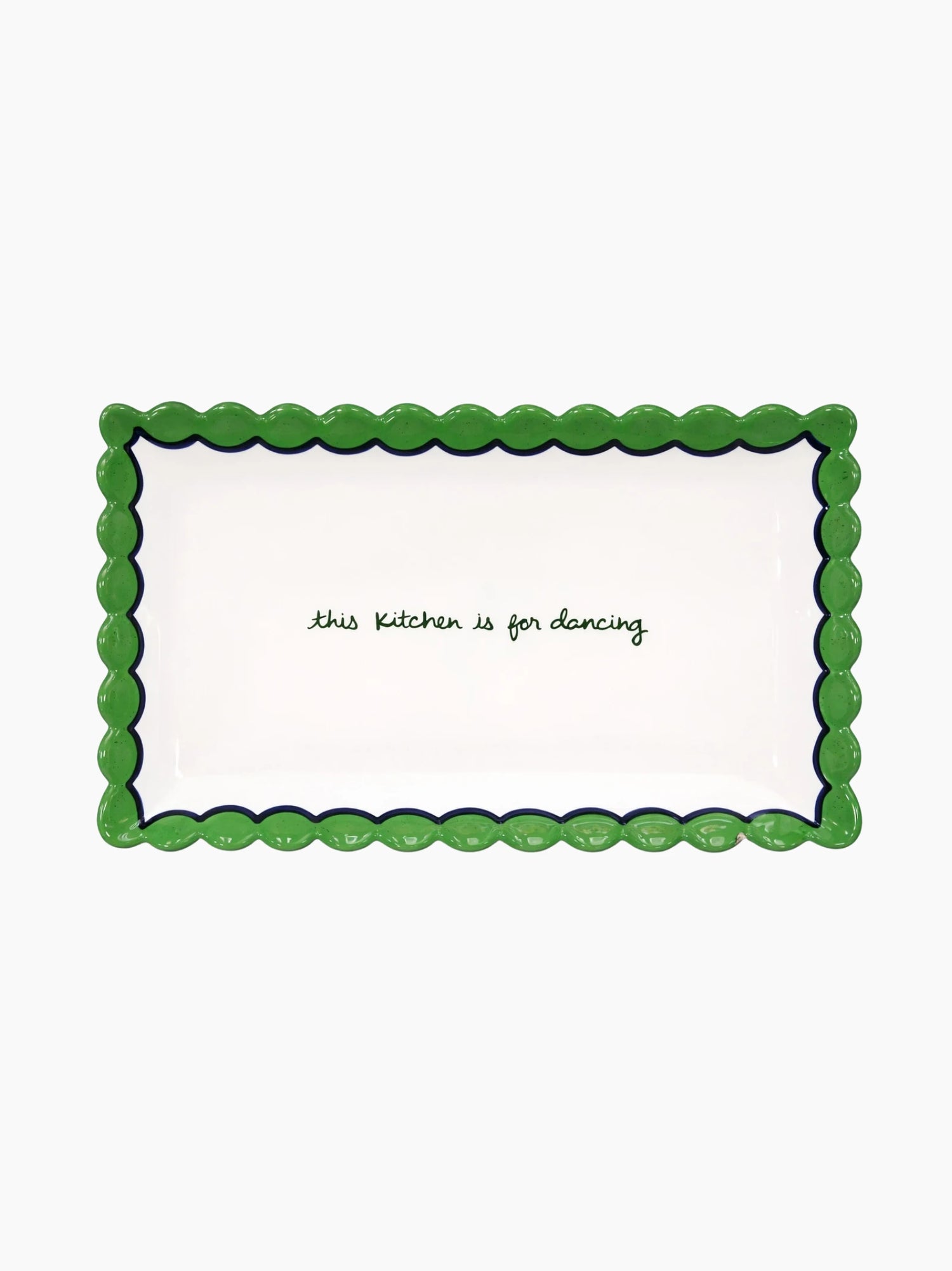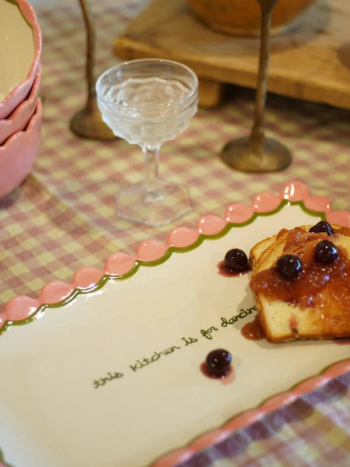 This scalloped serving tray is artisanally painted with coloured scallop detailing and hand-written text. A perfect addition to any tablescape, this is the ideal gift for the laissez-faire host.