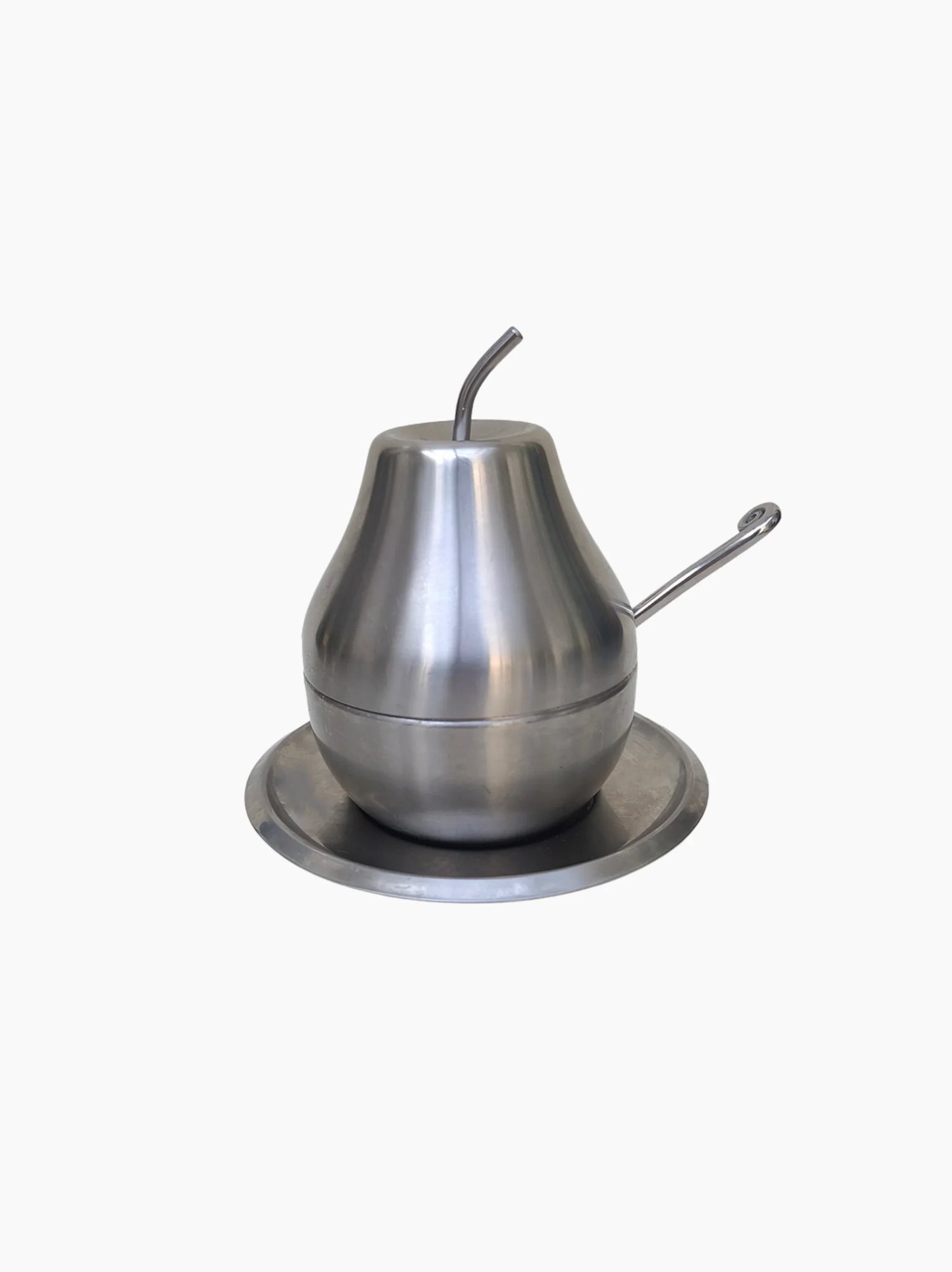 Inspired by mid-century design, this pear-shaped stainless steel sugar bowl brings a subtle sculptural elegance to the table, complete with its matching spoon and thoughtfully balancing everyday function with understated refinement, a timeless detail for coffee rituals and unhurried afternoons.